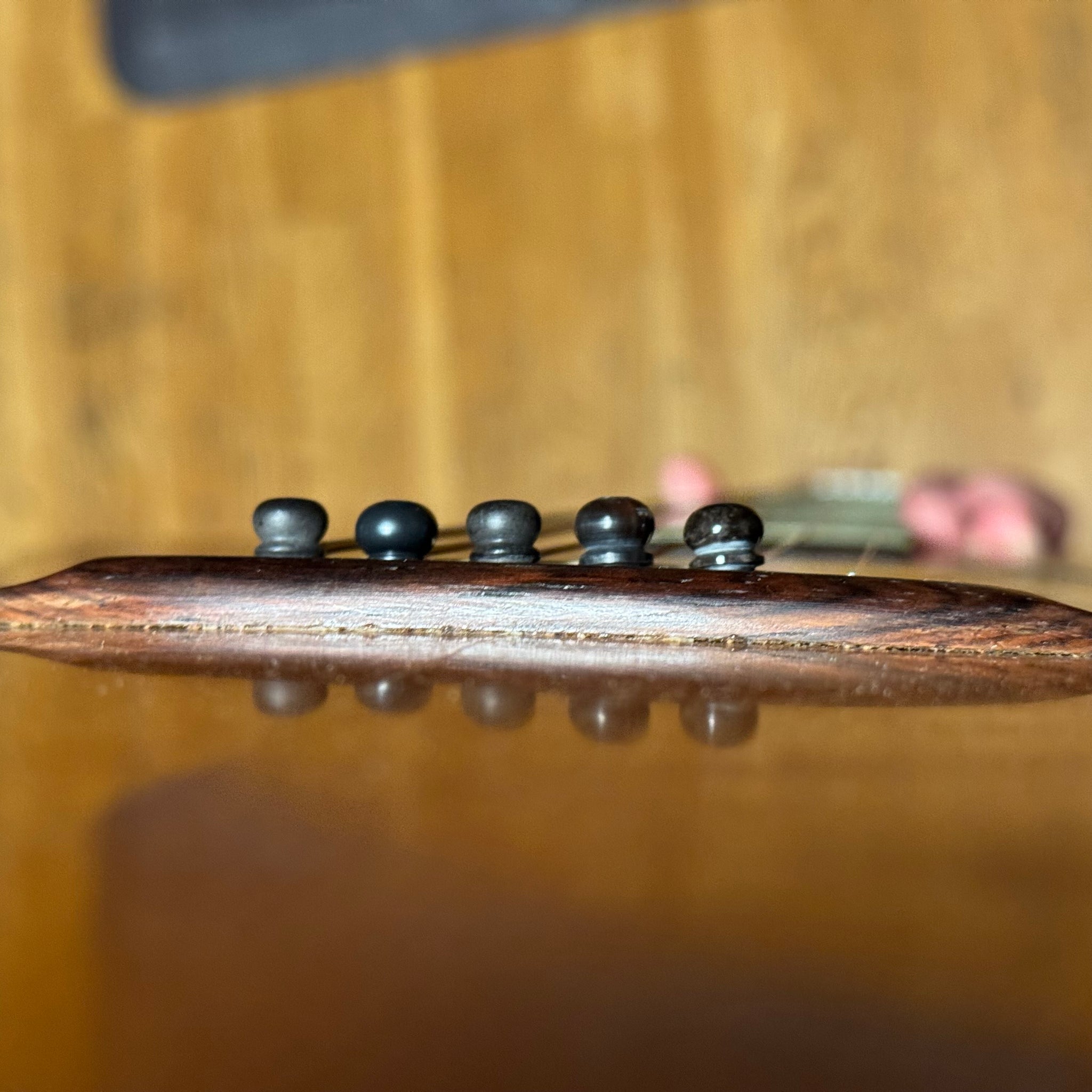 So this is a player grade guitar. It could use some more work, but you could use it as is and obtain plenty of pleasure and enjoyment. The photos show it missing one bridge pin, but I will install one prior to shipment.