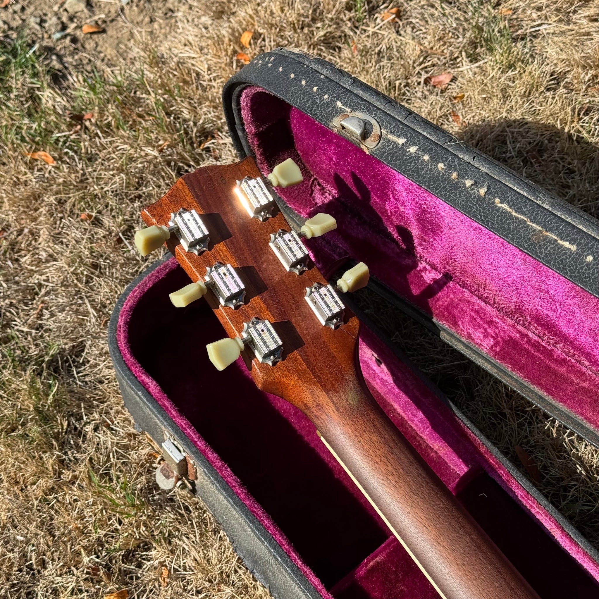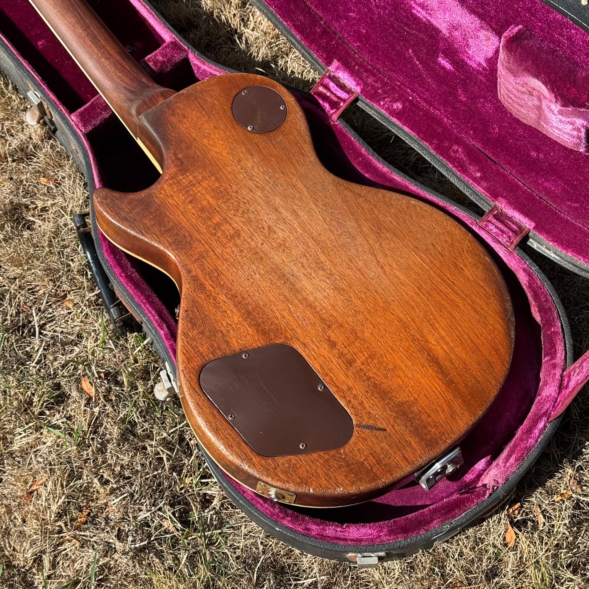 Comes with an era-correct early 1970s Gibson Les Paul case with purple lining. The case shows wear and tear, one latch is missing, and it has a sticker on it—but it will do the job, and I’ll make sure it’s securely closed and taped for shipping.