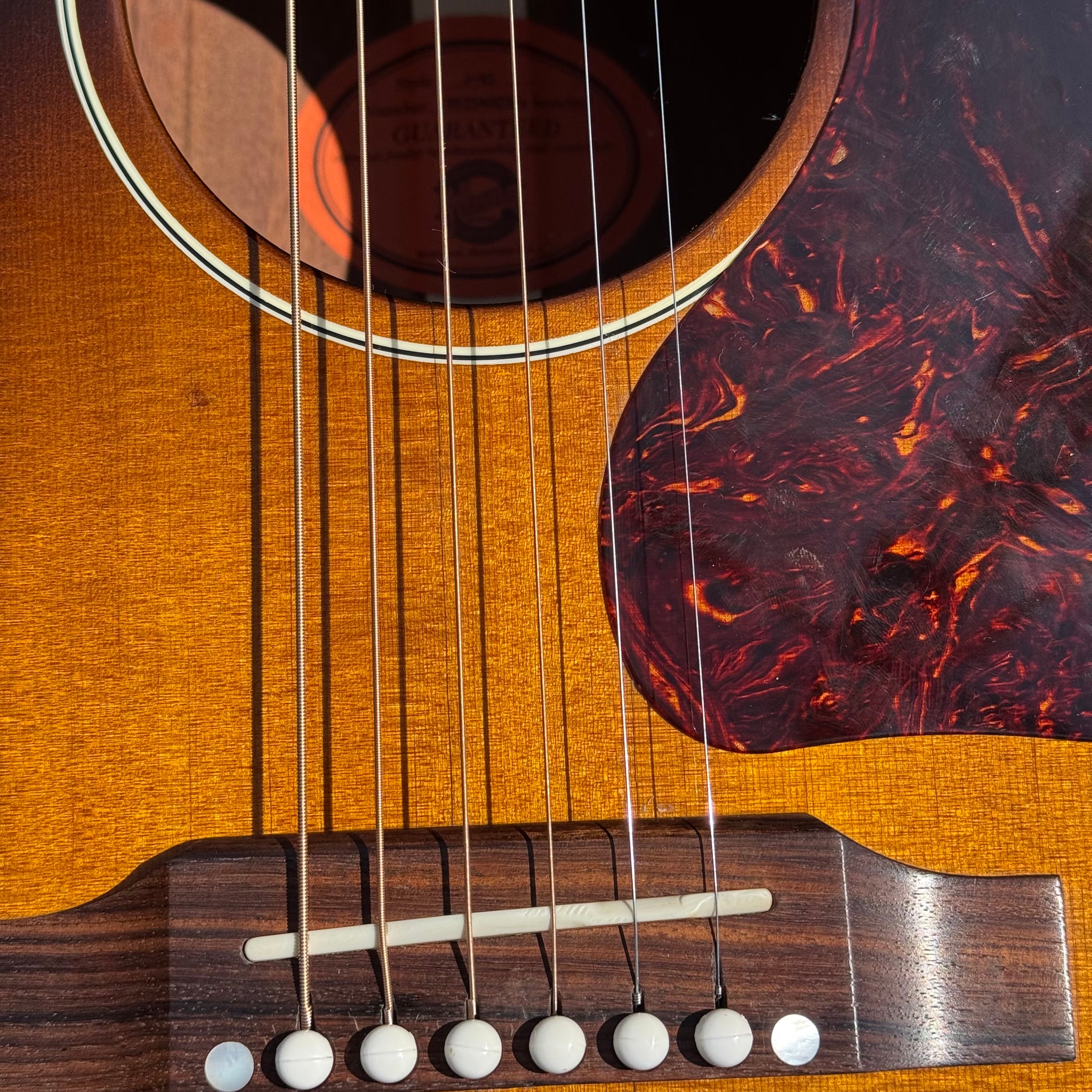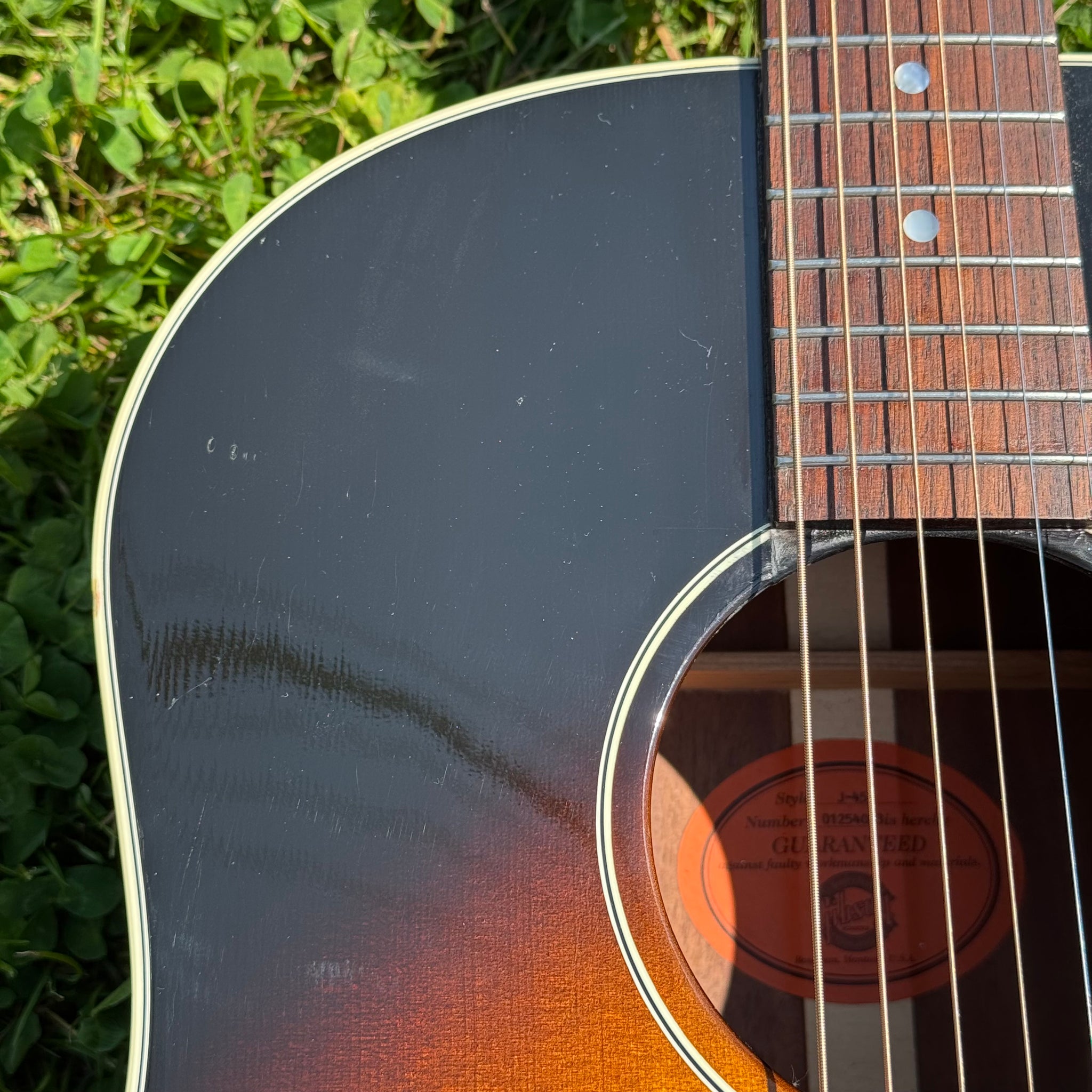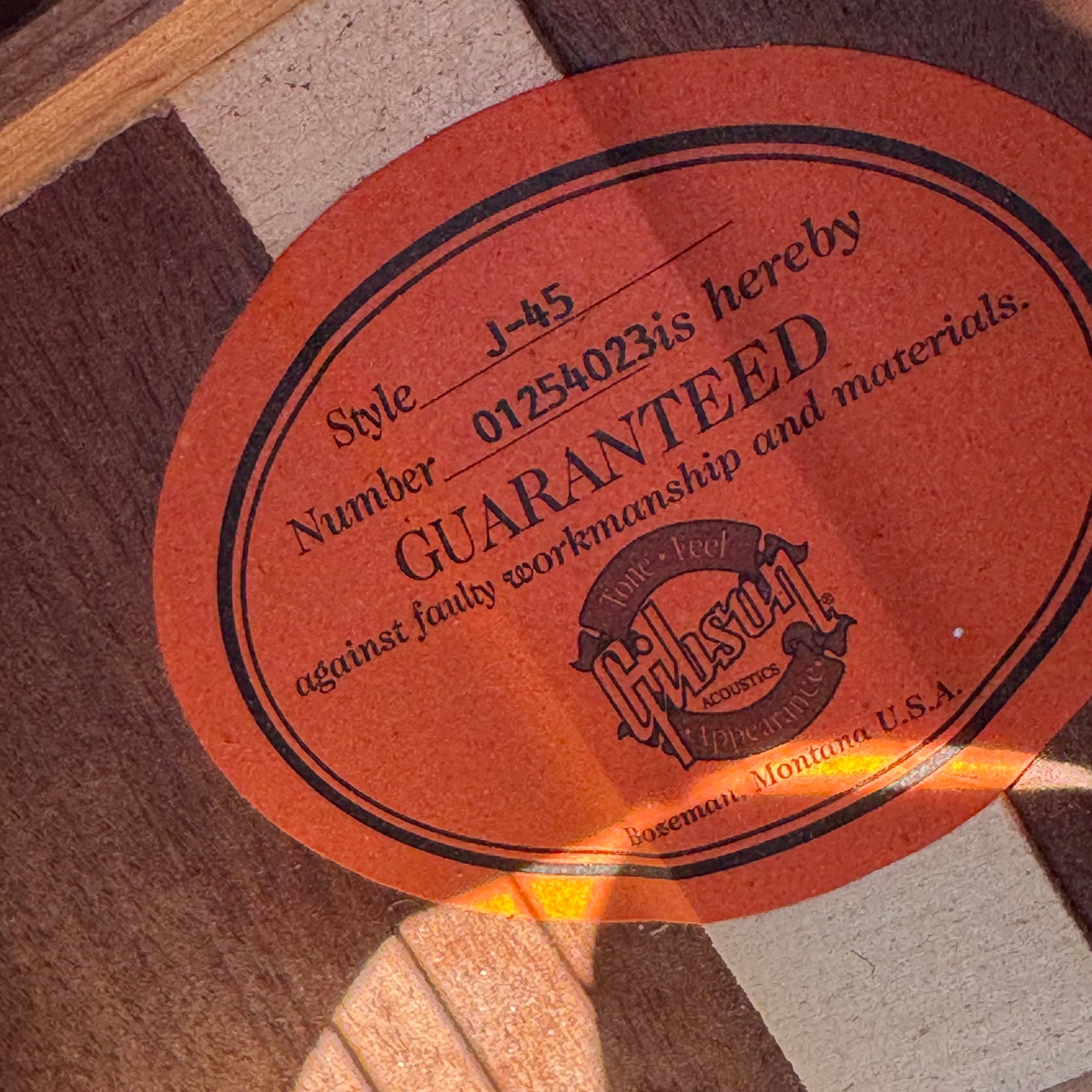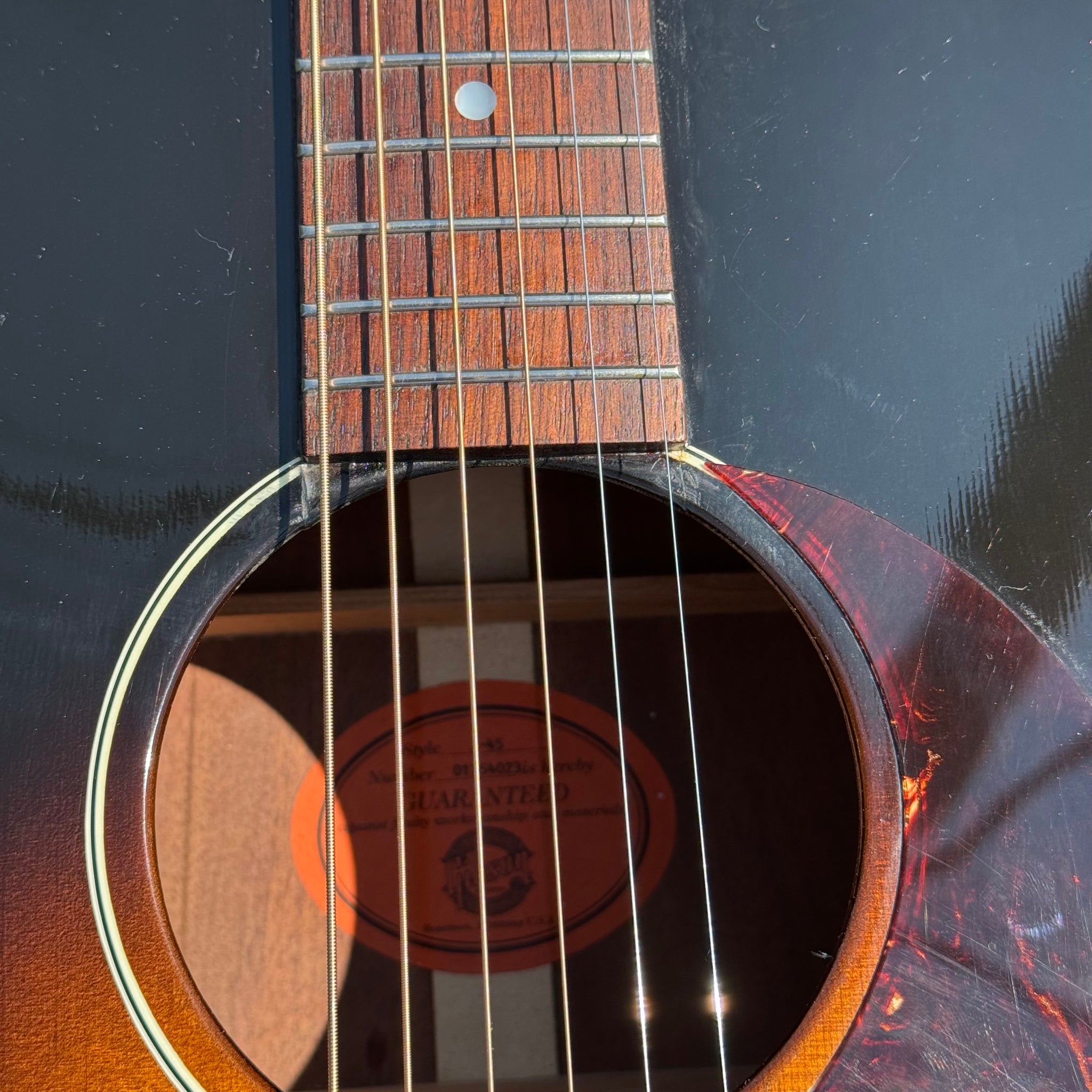 2004 Gibson J 45 Standard. Has a pick up installed with an output jack where the lower strap button would be. It’s in very good condition. Some repaired top cracks. I’ve got close-ups of everything. It was professionally done. Guitar has just been restrung and set up and sounds great. Frets are great.