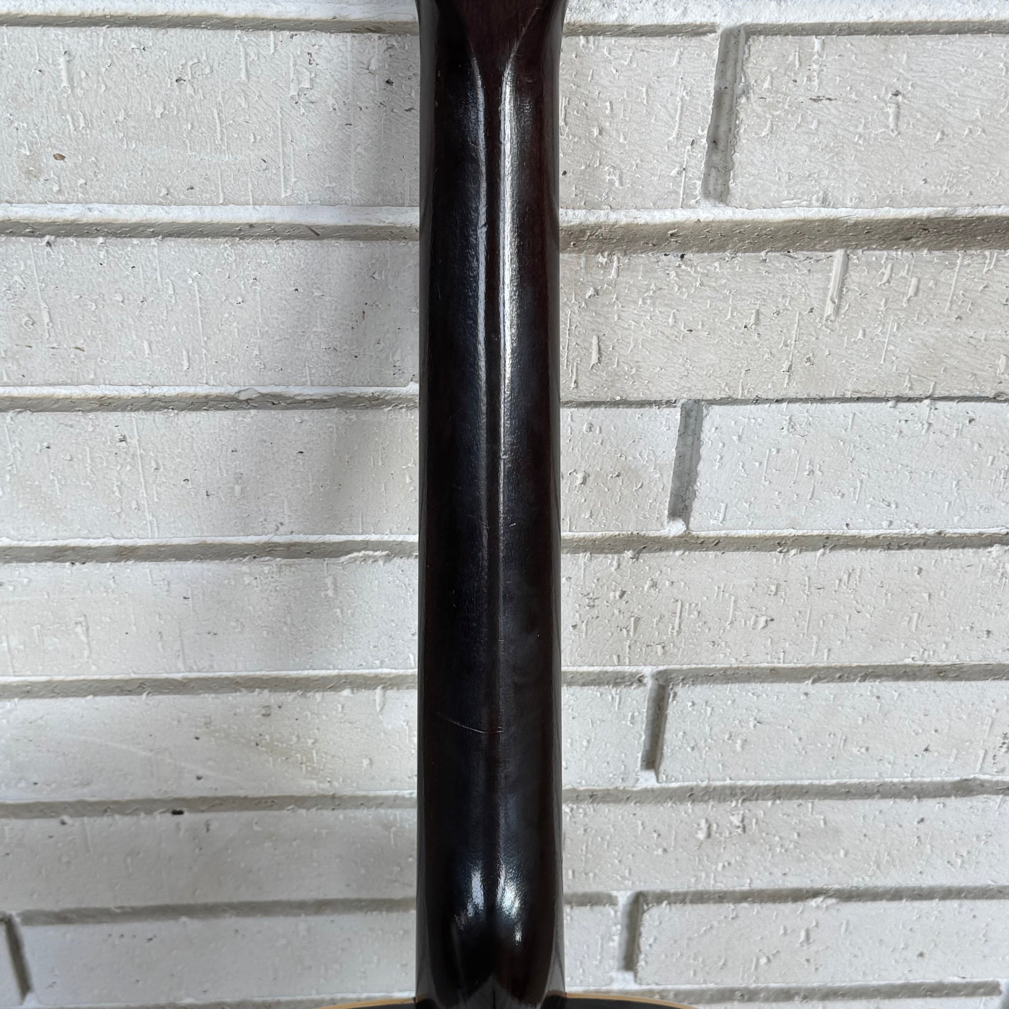 This one has a few marks, but I’m calling it. “excellent” due to the allowance we give to a nearly hundred-year-old instrument in using this design designation. This one has a few marks, but I’m calling “excellent“ due to the allowance we give to a nearly instrument in using this .It still has the original Ebony nut and nylon saddle. The nylon saddle still has its original height, although there is some minor grooving where the strings rest. I have kept these intact because they are original. Many opt for bone replacements for even better sustain and resonance. But that’s up to you.