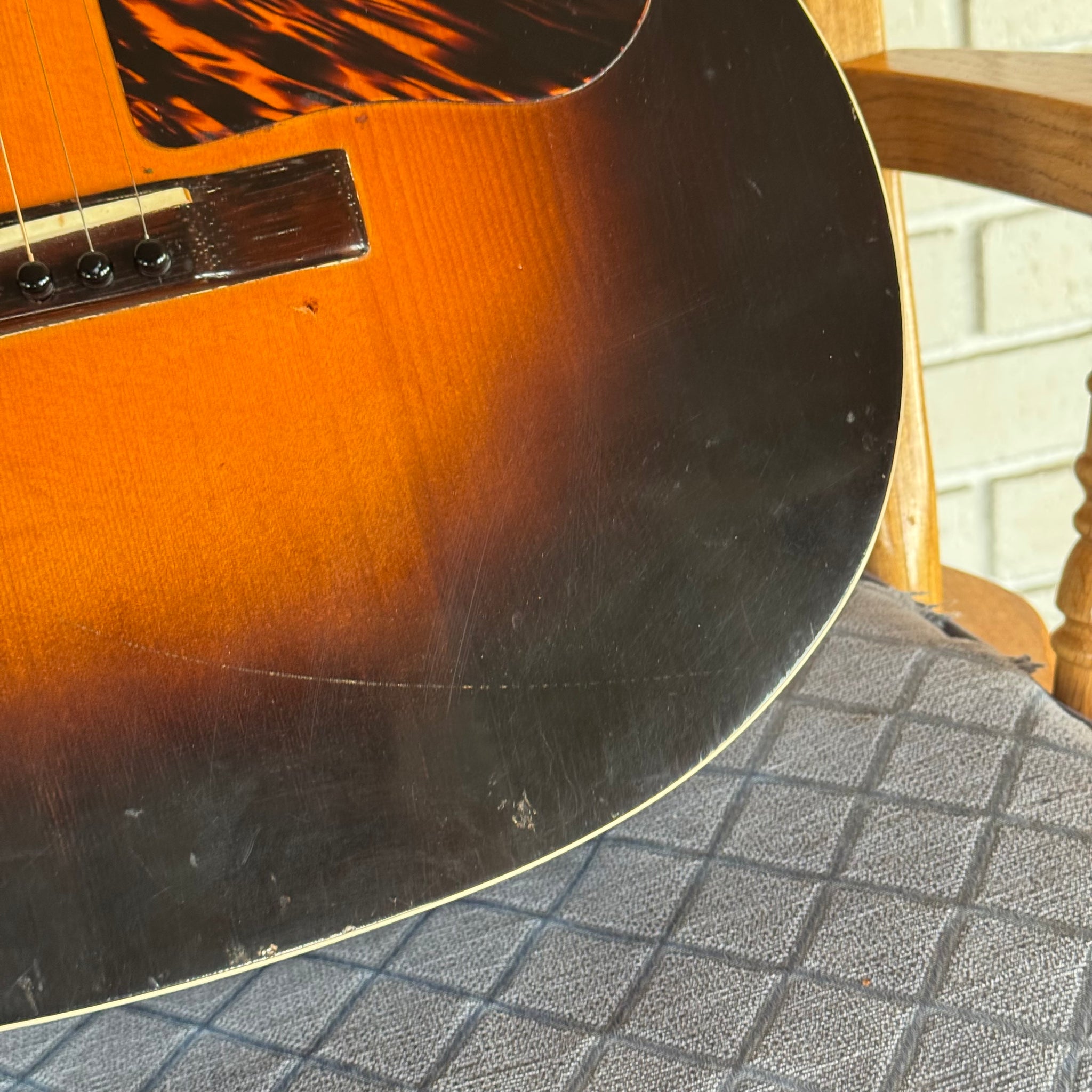 These are similar in look to the L-00 guitars of the era but with some key differences. Similarities include the finish, neck shape and feel, and killer fire stripe pick guard. However, these guitars are ladder braced. This one has a very nice sound and resonance.